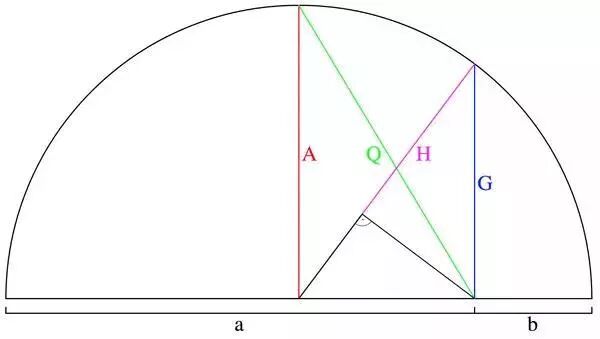 A geometric construction of the Quadratic and Pythagorean means (of two numbers a and b). via Wikipedia(https://en.wikipedia.org/wiki/Pythagorean_means)